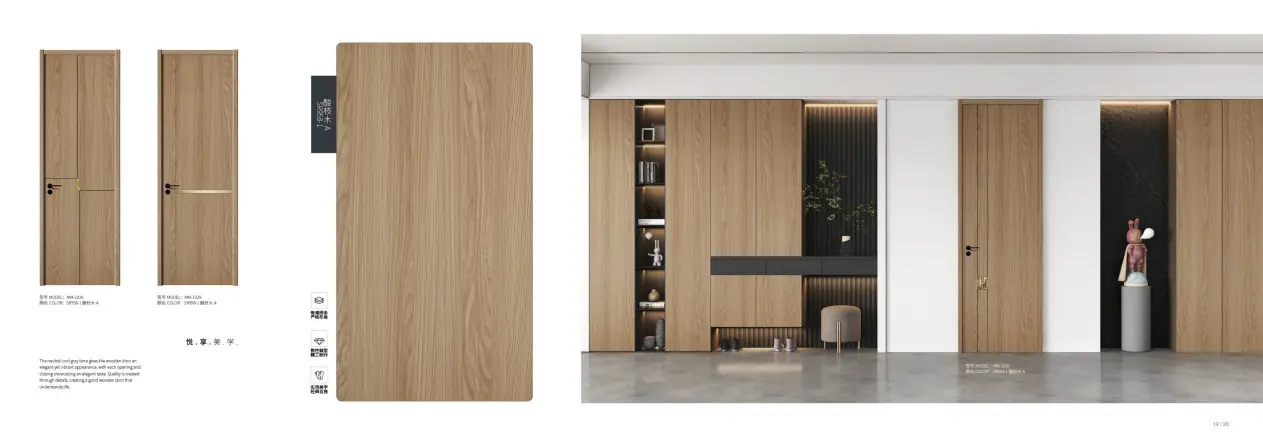Dit is die mees klassieke en hoofstroomtoepassing. MDF het 'n eenvormige tekstuur en is maklik om in verskillende komplekse vorms (soos gevormde deurpanele) te fabriek en te kerf. Die blisterfilm kan die hele deurpaneel perfek bedek, insluitend konkawe-konvekse groewe en geboë oppervlaktes. |
