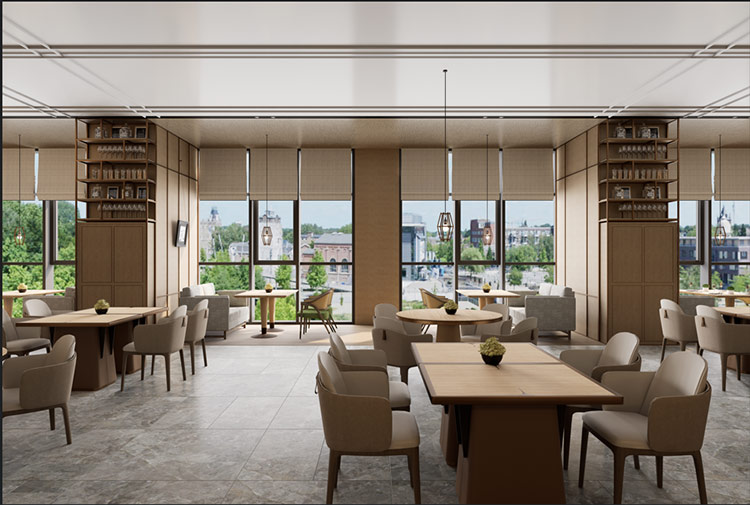 * Warm neutrale kleure: Gekarameliseerde kleure wat rooibruin met moderniteit meng, geskik om 'n nostalgiese kommersiële omgewing te skep.